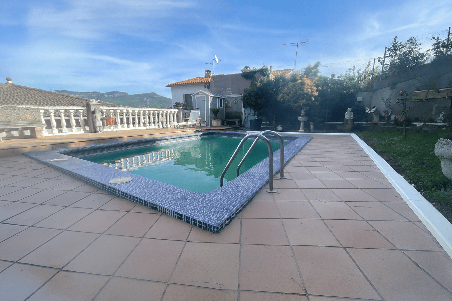 👉 Planta superior 1: Zona exterior con piscina privada, rodeada de naturaleza y con unas vistas preciosas al entorno. La vivienda dispone de calefacción, aire acondicionado, chimenea, y un garaje cerrado para dos coches.