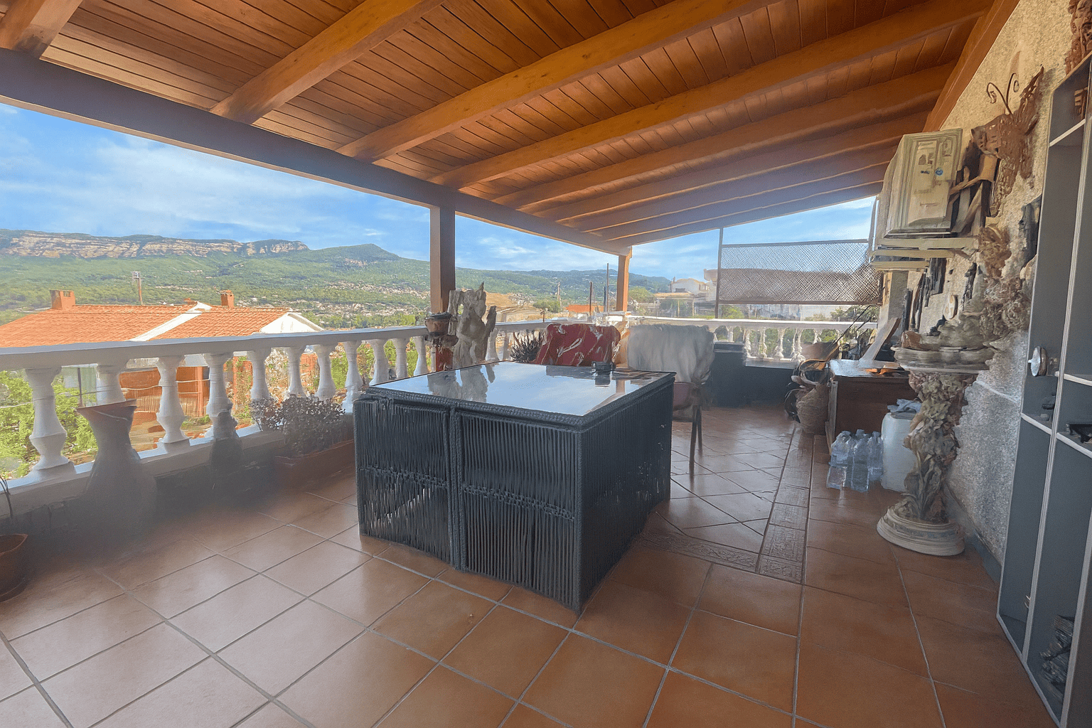 👉 Planta superior: Zona de día muy luminosa con un segundo amplio comedor con salida a otra gran terraza, perfecta para disfrutar del sol y las vistas despejadas. Dispone de dos habitaciones dobles, una individual y un baño muy amplio con bañera, plato de ducha y doble pica. En esta misma planta hay una barbacoa adicional y un horno de leña, ideales para disfrutar con familia y amigos.