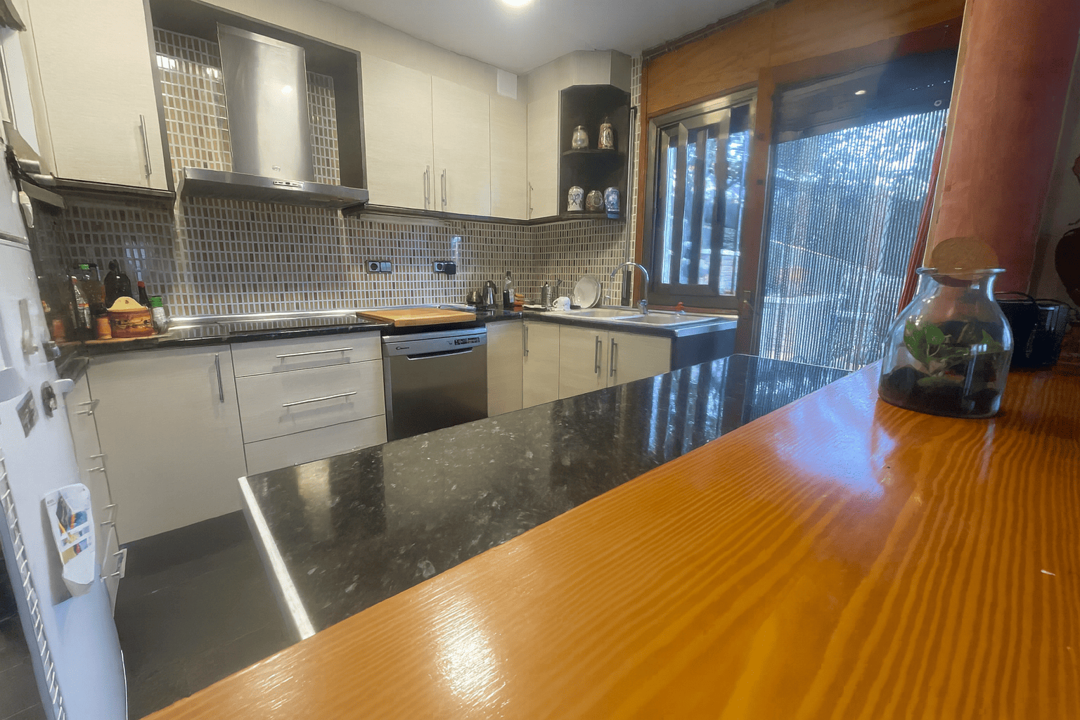 👉 Planta principal: Salón-comedor con chimenea y cocina abierta, creando un espacio moderno y funcional que conecta directamente con una gran terraza con vistas panorámicas, zona de barbacoa y espacio ideal para comidas al aire libre. En esta planta también encontramos un baño completo con plato de ducha, una habitación doble y una habitación individual.